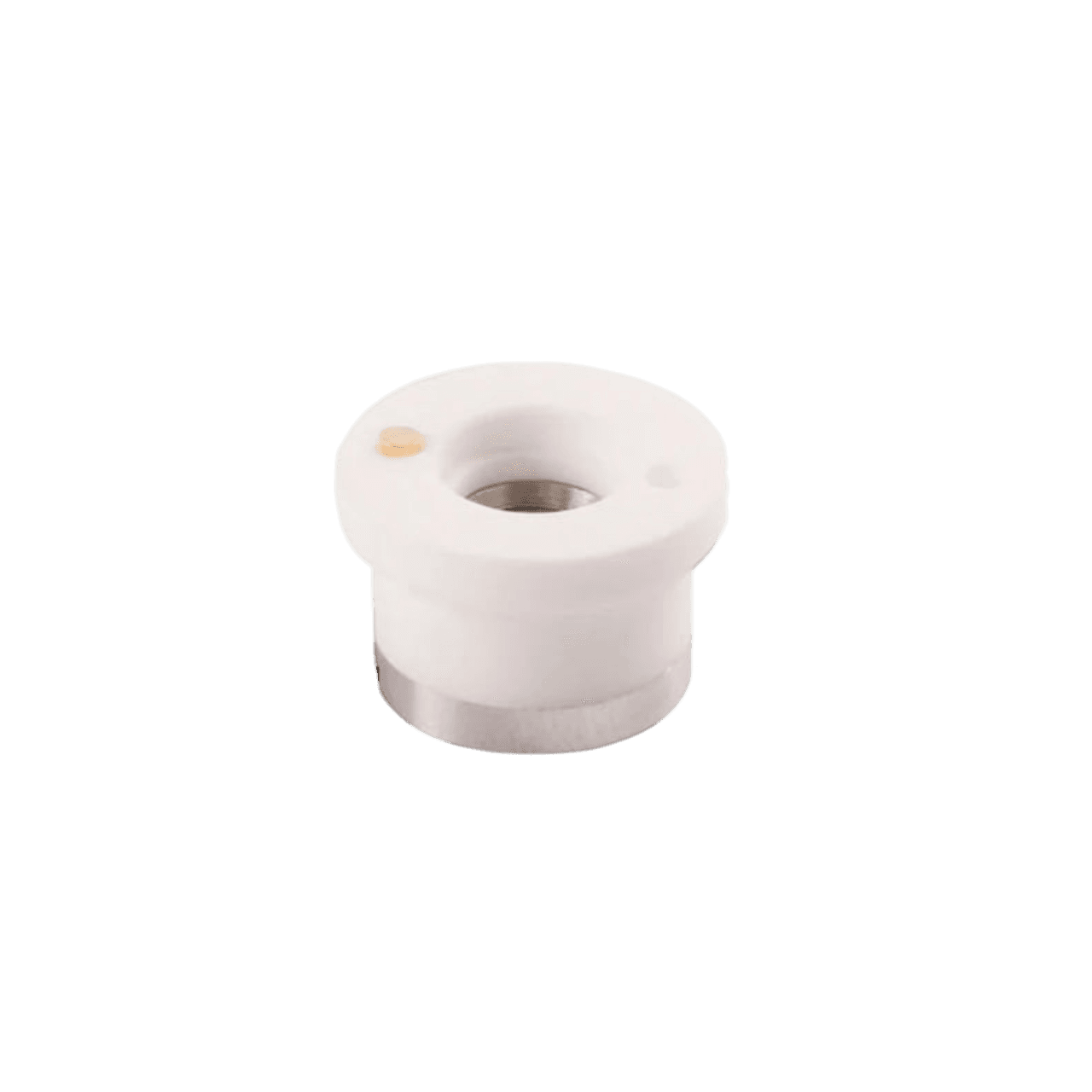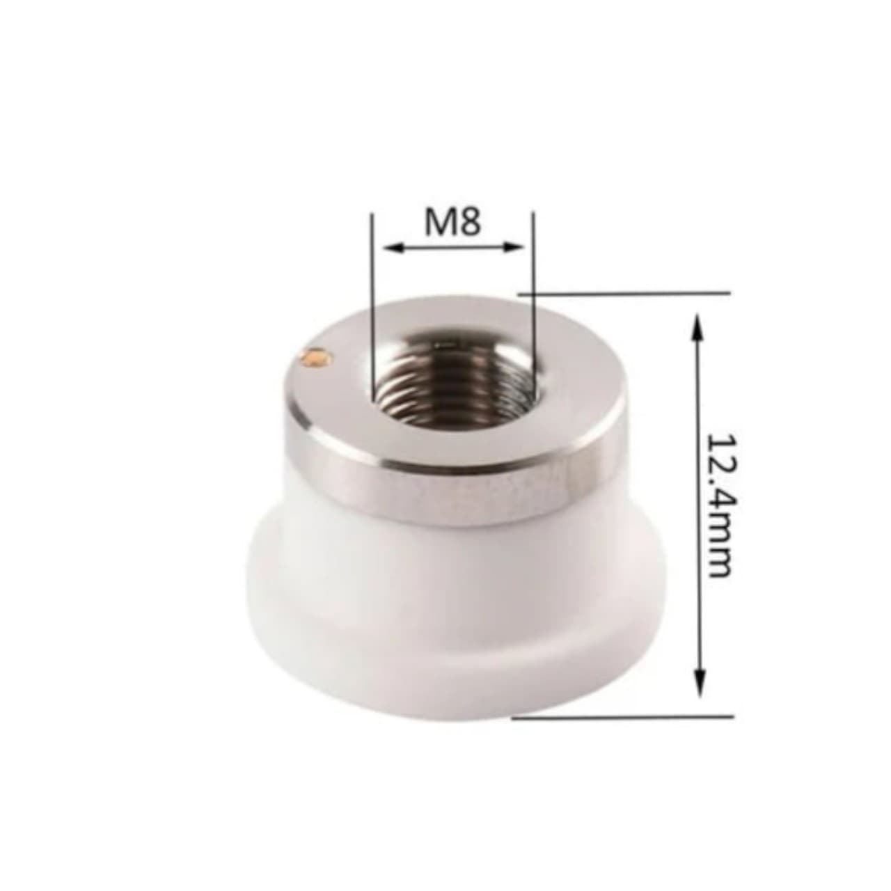 raytools 3d / hsg wtc-04 3d ceramic nozzle holder in d19.5 mm × h12.4 mm with m8 thread for industrial fiber laser cutting heads. this compact 3d-style ceramic holder provides stable nozzle support, accurate positioning and reliable electrical insulation for consistent cutting performance. built from technical ceramic for dependable daily production and repeatable results.